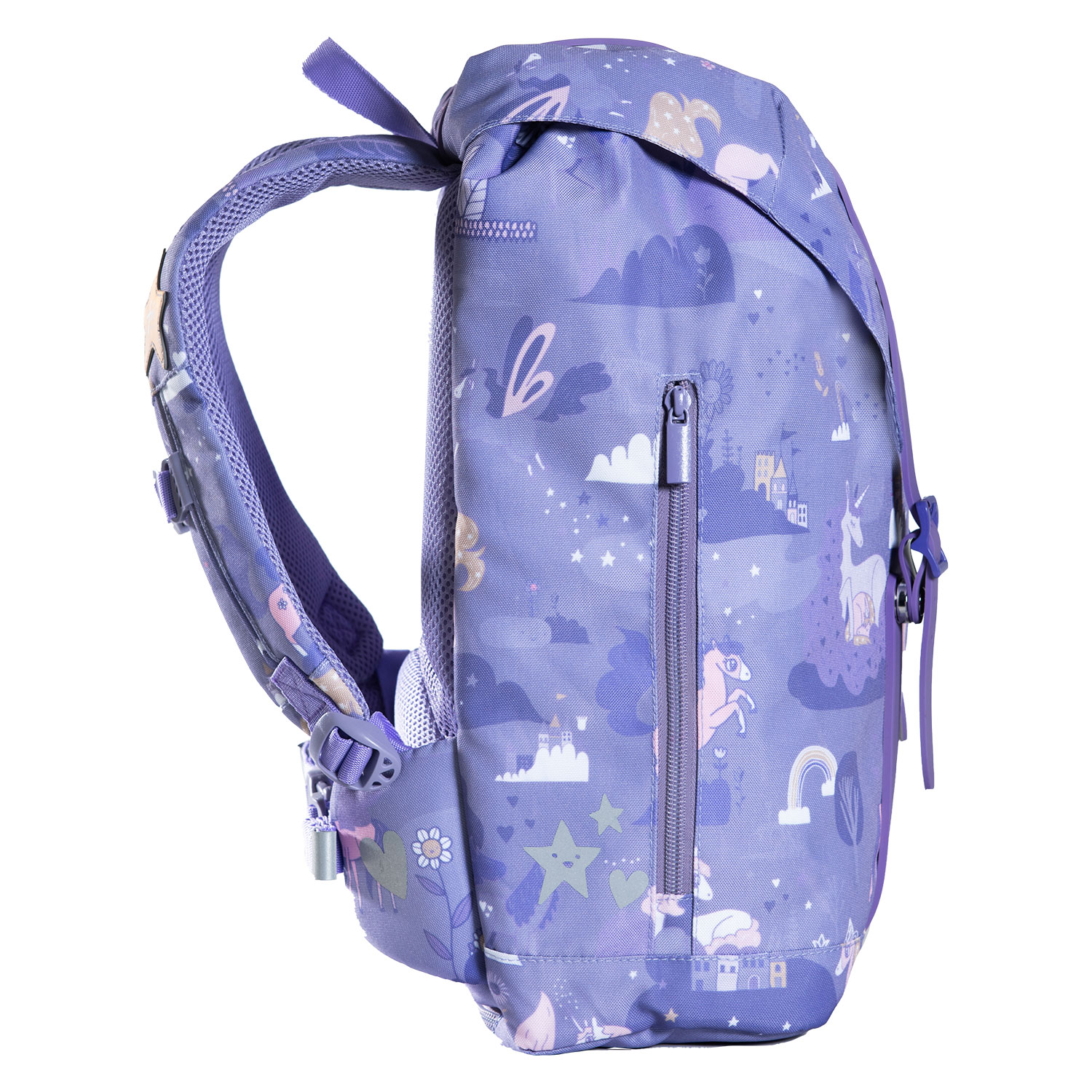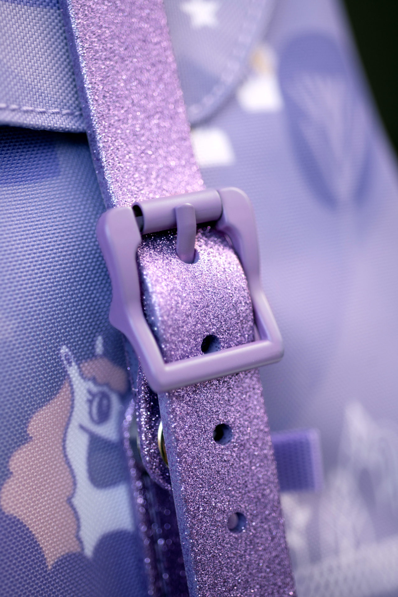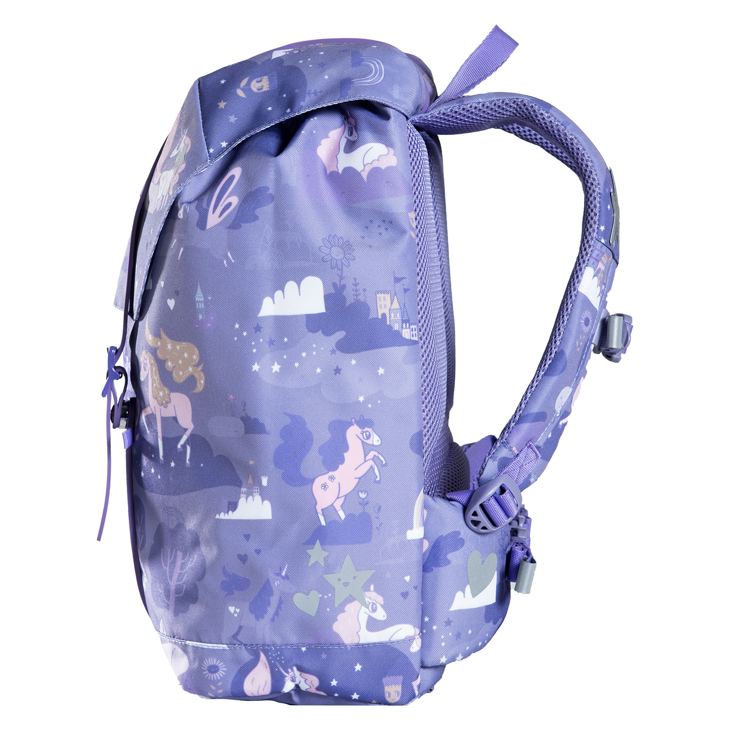 For everyone who loves unicorns, this backpack is a must! Fairytale design with unicorns, horses, rainbows, magic dust, and dream castles – from the children’s own dream world. Beautiful colors in purple and pink shades, with details in gold! And coolest of all: Straps with glitter! Reflectors are integrated with the design on all sides, like stars and hearts. And the backpack is of course super comfortable to wear! Easy to open and close with the magnetic closures on the straps. Clever, isn’t it? Side pocket for a water bottle and a snap hook for keys – or important decorations. If they aren’t already dangling from the loop on the front of the backpack. Matching rain cover in a separate pocket.