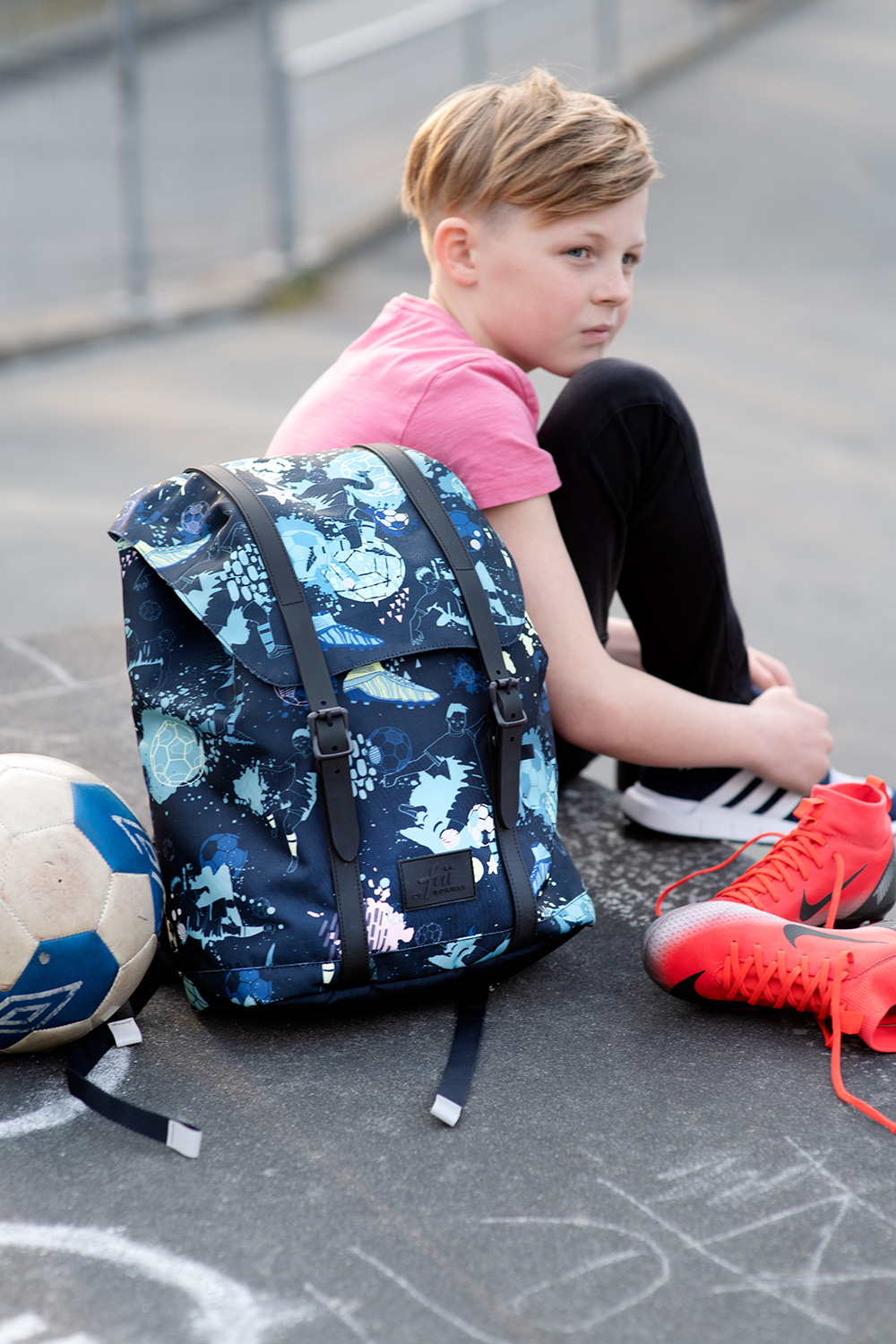 If you have a little footballer, this backpack will be a hit! The striking color combinations and splashing balls will inspire to action! Reflectors are integrated with the design as footballs and stars.