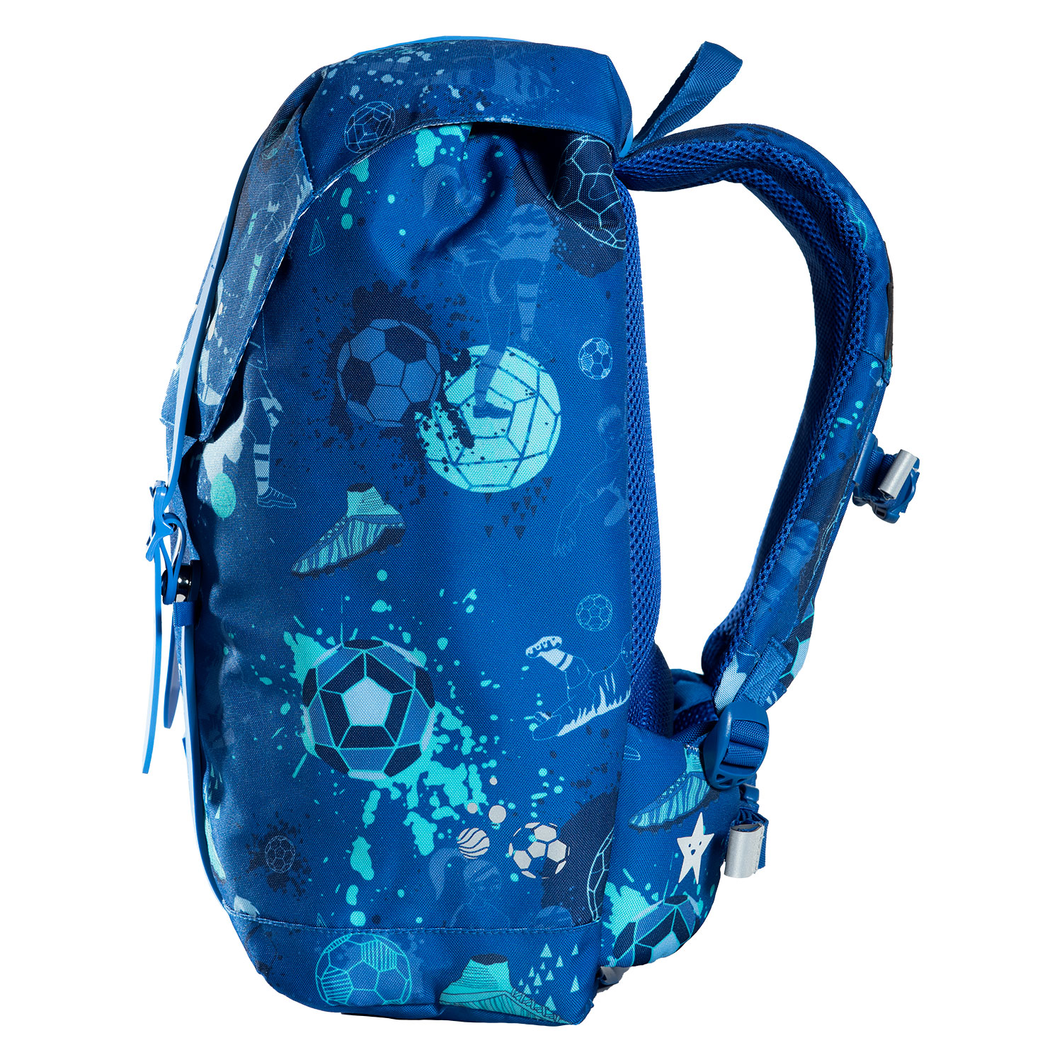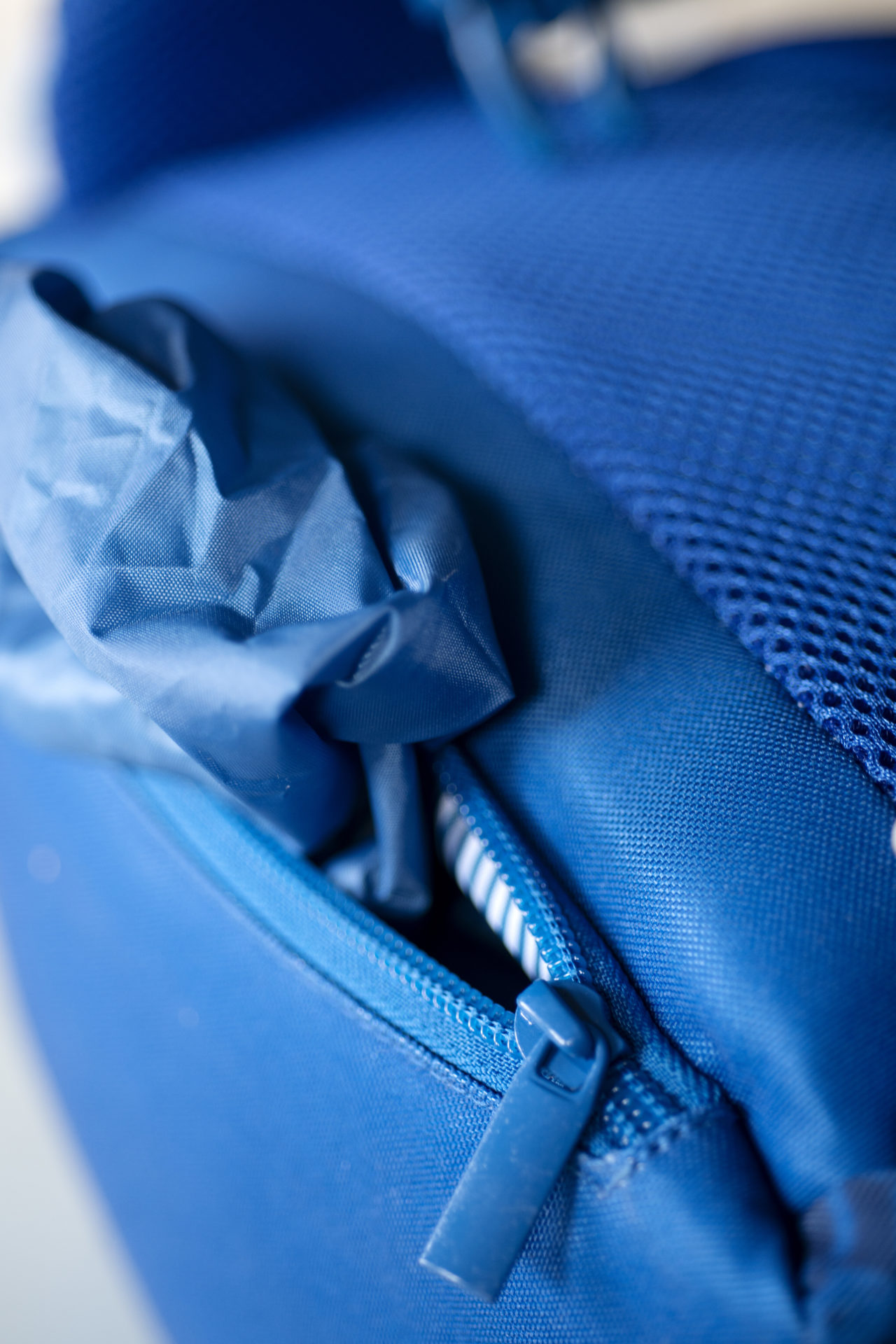 You have the option of carrying the lightweight gym sack on the outside of the backpack or inside it. It takes up very little space when not in use. It has a small pocket for mobile or small objects, and there are of course reflectors on both the backpack and the gym sack. The pencil case is empty, giving you the option to choose your own crayons and markers to put in it.
