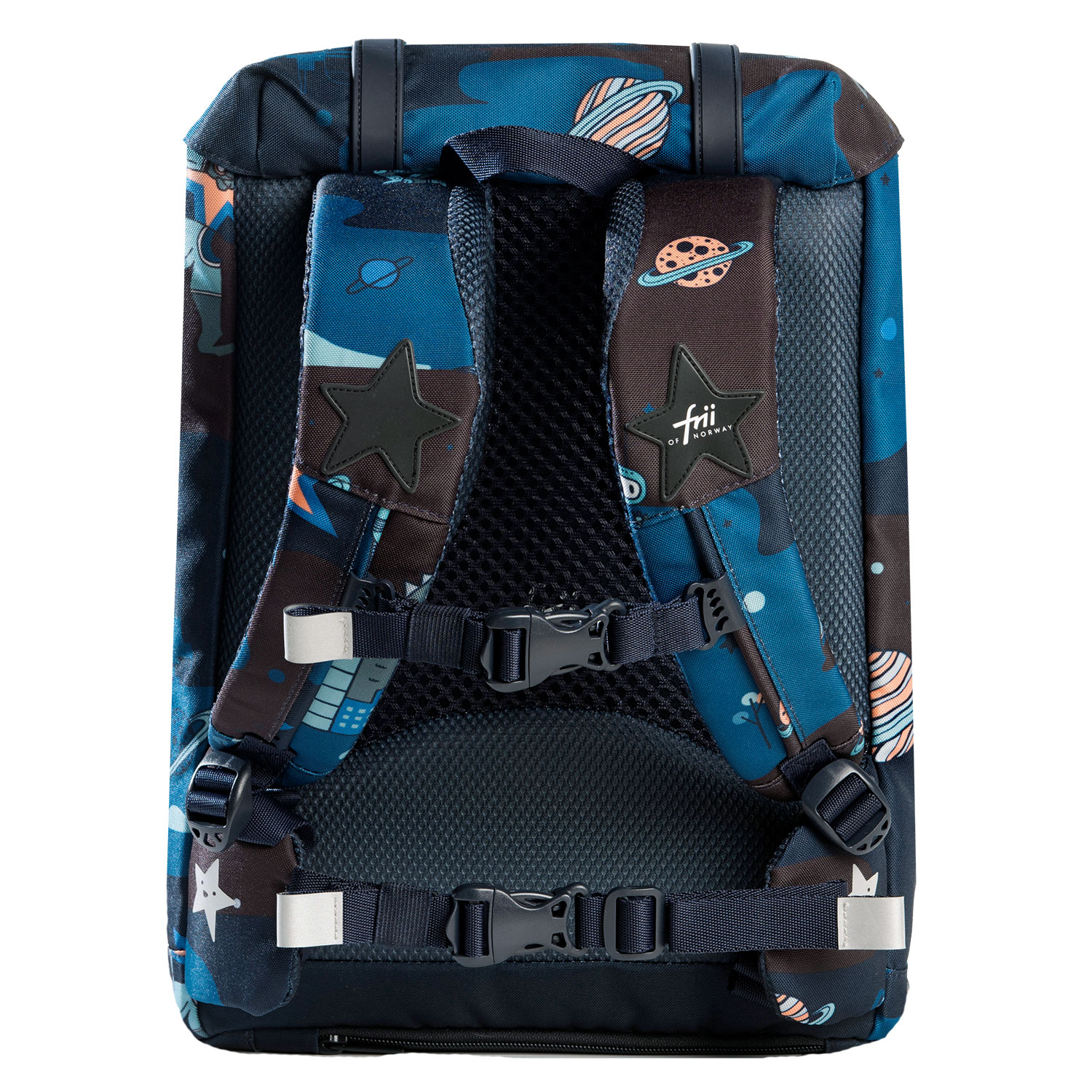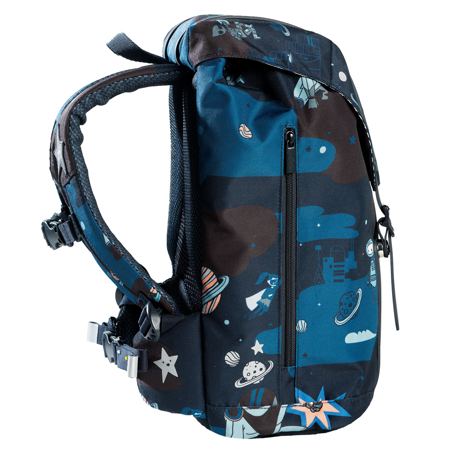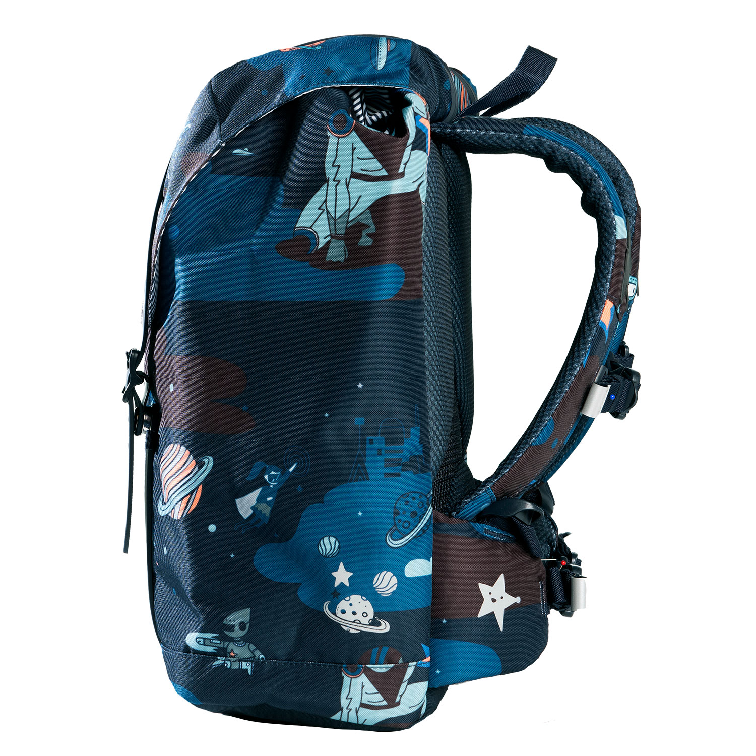 An exciting universe where flying superheroes will save the world from scary monsters! This backpack is cool with its awesome colors and contrasts. The backpack of the year has cool, orange details! Reflectors are integrated with the design as splashes, stars, and planets. There is room for a water bottle and keys in the side pocket with the internal snap hook. Top carrying comfort and quality for active school children. The magnetic closures on the straps make opening and closing the backpack quick and easy! And of course a matching rain cover in a separate pocket.